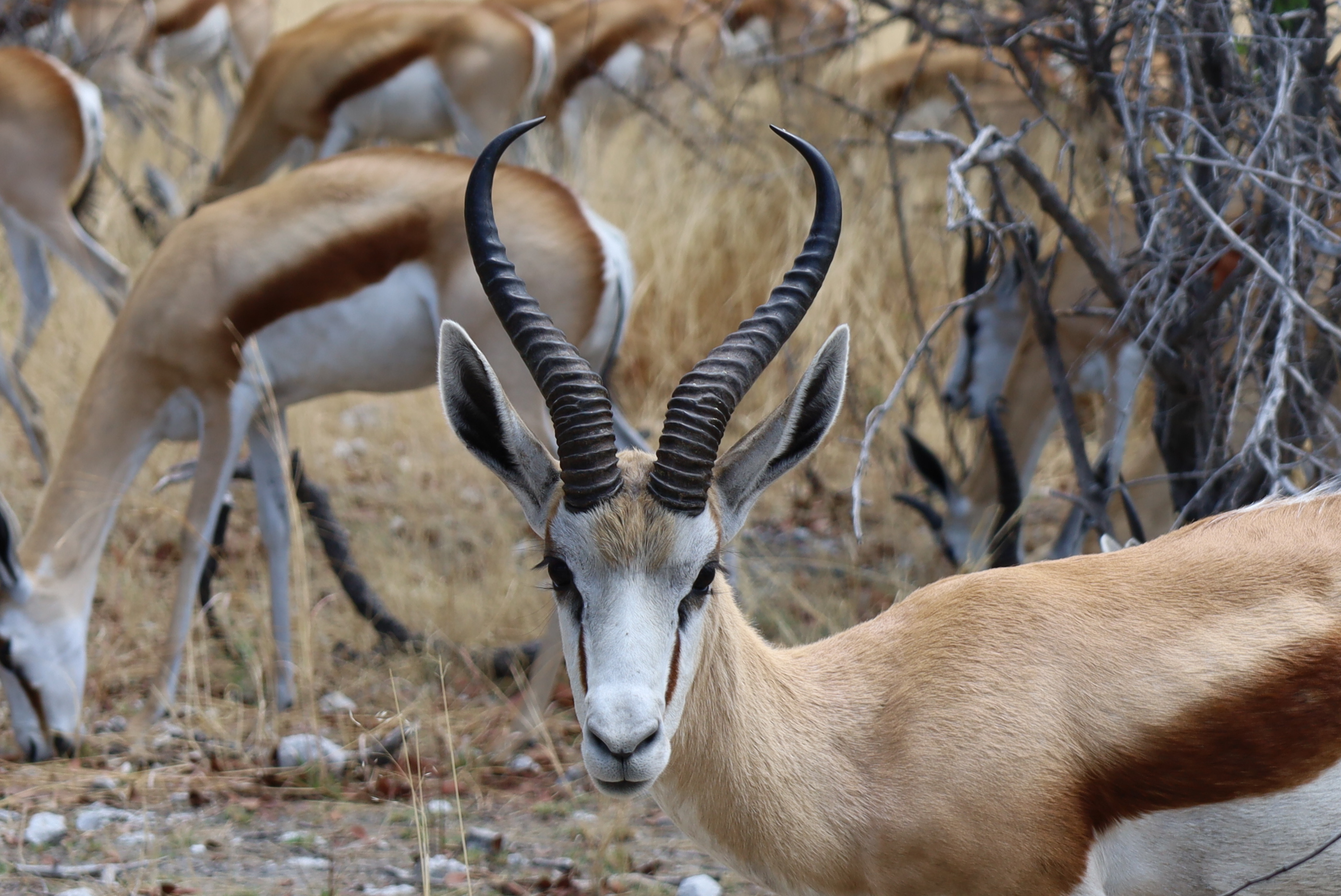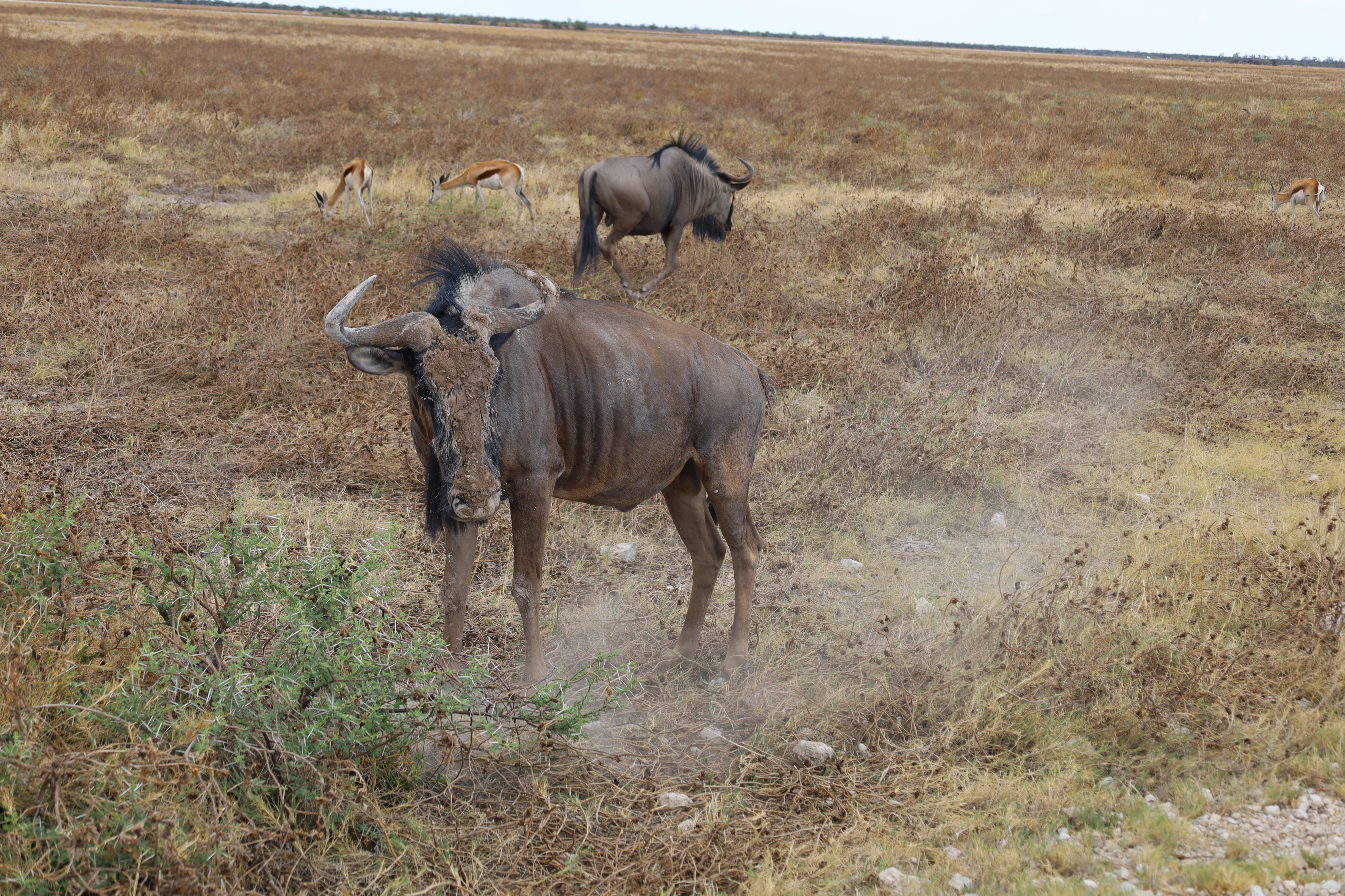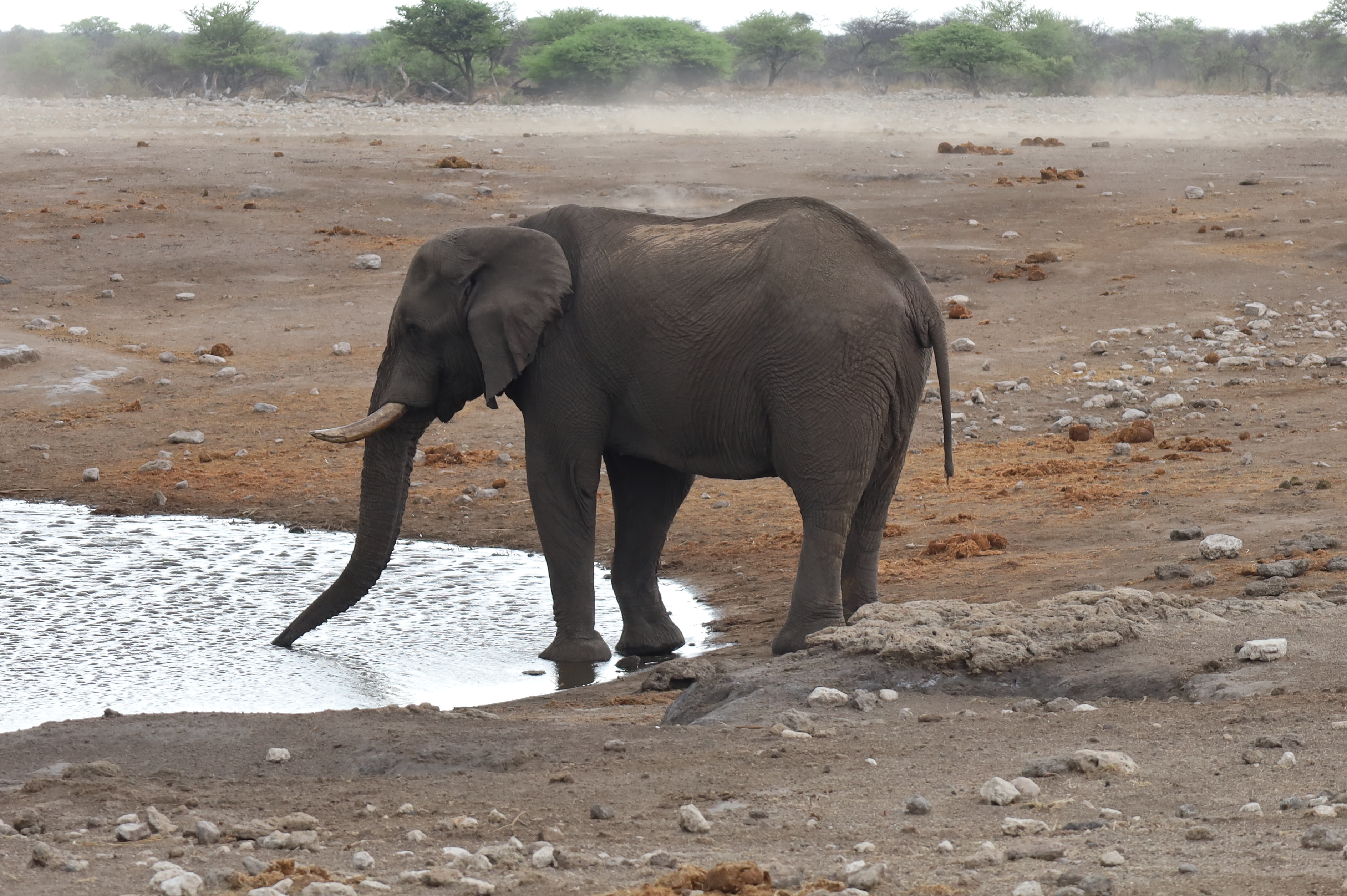 Nous avons commencé le safari en milieu d’après midi pour découvrir l’unique parc national d’Etosha et observer sa faune sauvage. Entre les reflets blancs du Pan et les régions plus verdoyantes de l’ouest, entre forêt, savane et désert, Etosha offre l’un des plus beaux et plus riches décors pour les safaris en Afrique australe. Nous avons vu beaucoup d’animaux en cette première après midi malgré la grosse tempête, nous nous sommes mis près d’un plan d’eau et là un gigantesque pachyderme est arrivé de nul part c’était un moment magique.