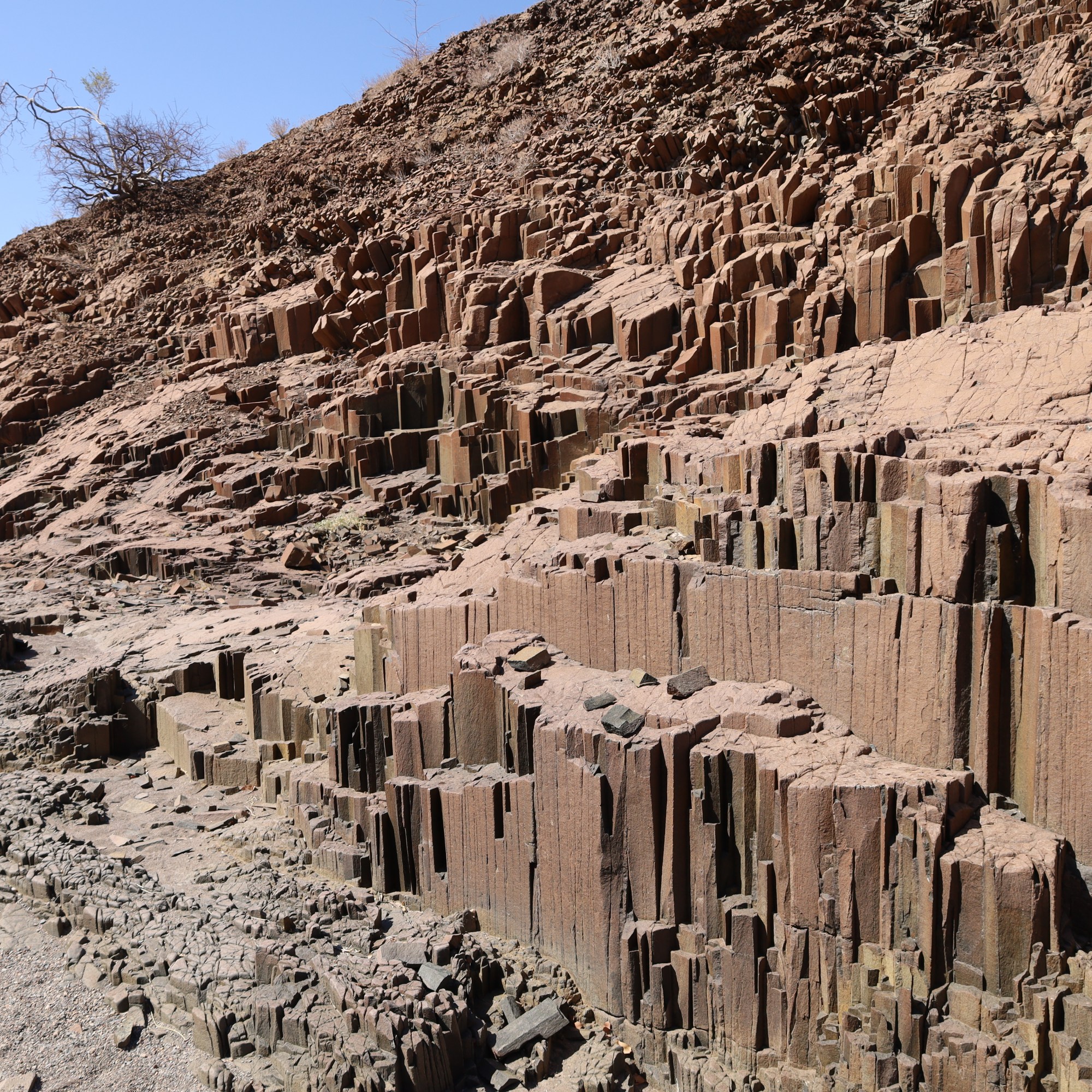 Ensuite nous avons visité la montagne brûlée et des orgues basaltiques qui se trouvent à 5 minutes en voiture de Twyfelfontein. Personnellement nous n’avons pas trouvé cela extraordinaire en ce qui concerne la montagne brûlée.