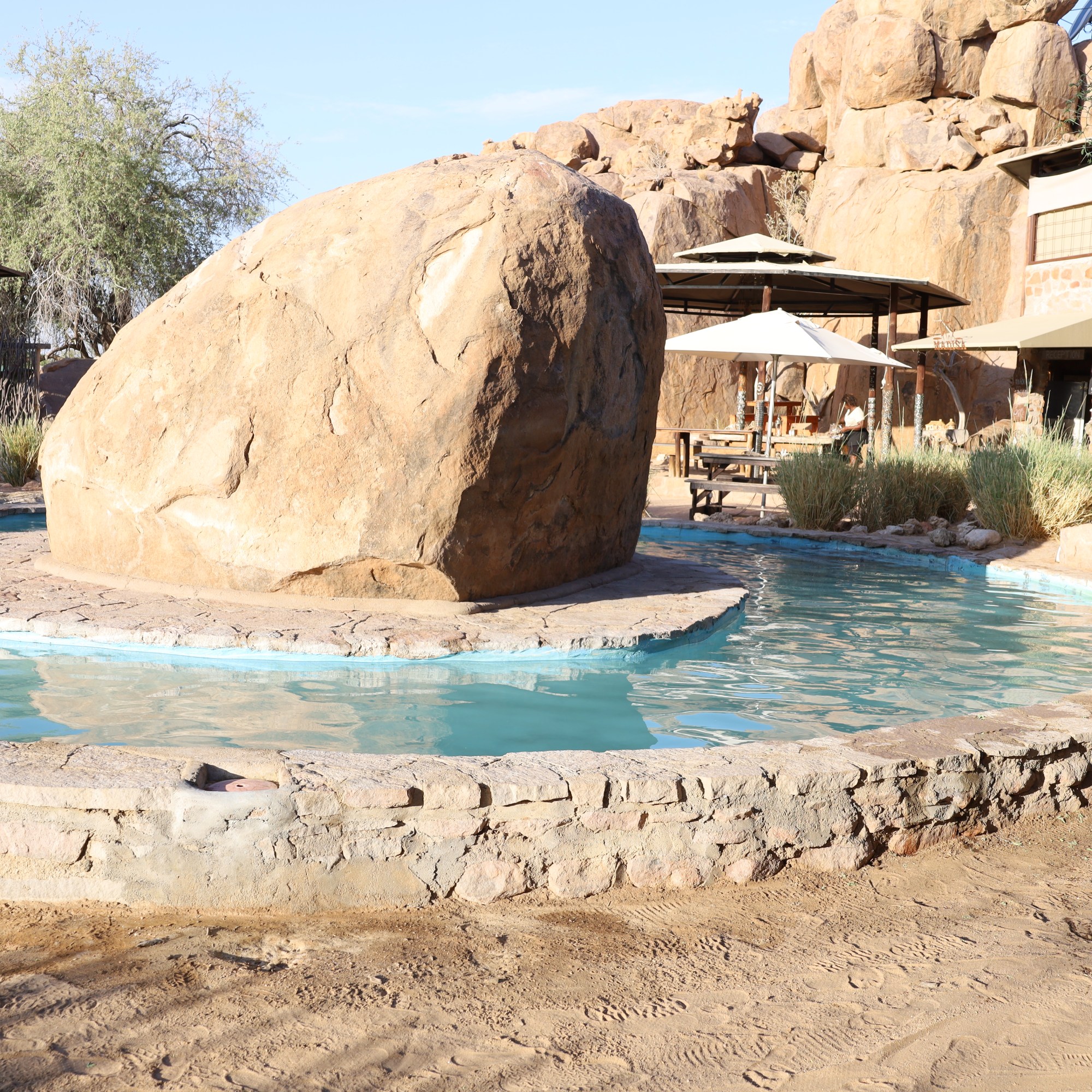 Je recommande cette hébergement pour son lieu atypique au milieu de nul part et vous y trouverez des suricates ainsi que zèbre et cheval qui se promènent autour des lodges et de la piscine.